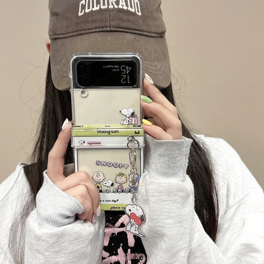 Cute Cartoon Snoopy Charlie Brown Transparent Phone Case For Samsung Galaxy Z Flip