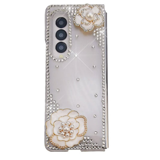 Bling Rhinestone Flower Transparent Hard PC Phone Cover For Samsung Galaxy Z Fold