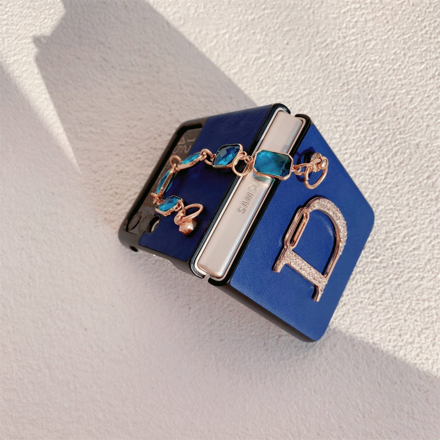 Blue Leather Case for Samsung Z Flip Galaxy Z Flip 3