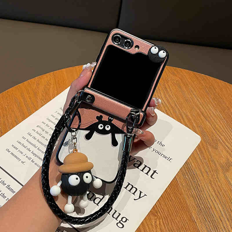 Creative Cartoon Leather Case With Hand Strap For Samsung Galaxy Z Flip 6/Z Flip 4