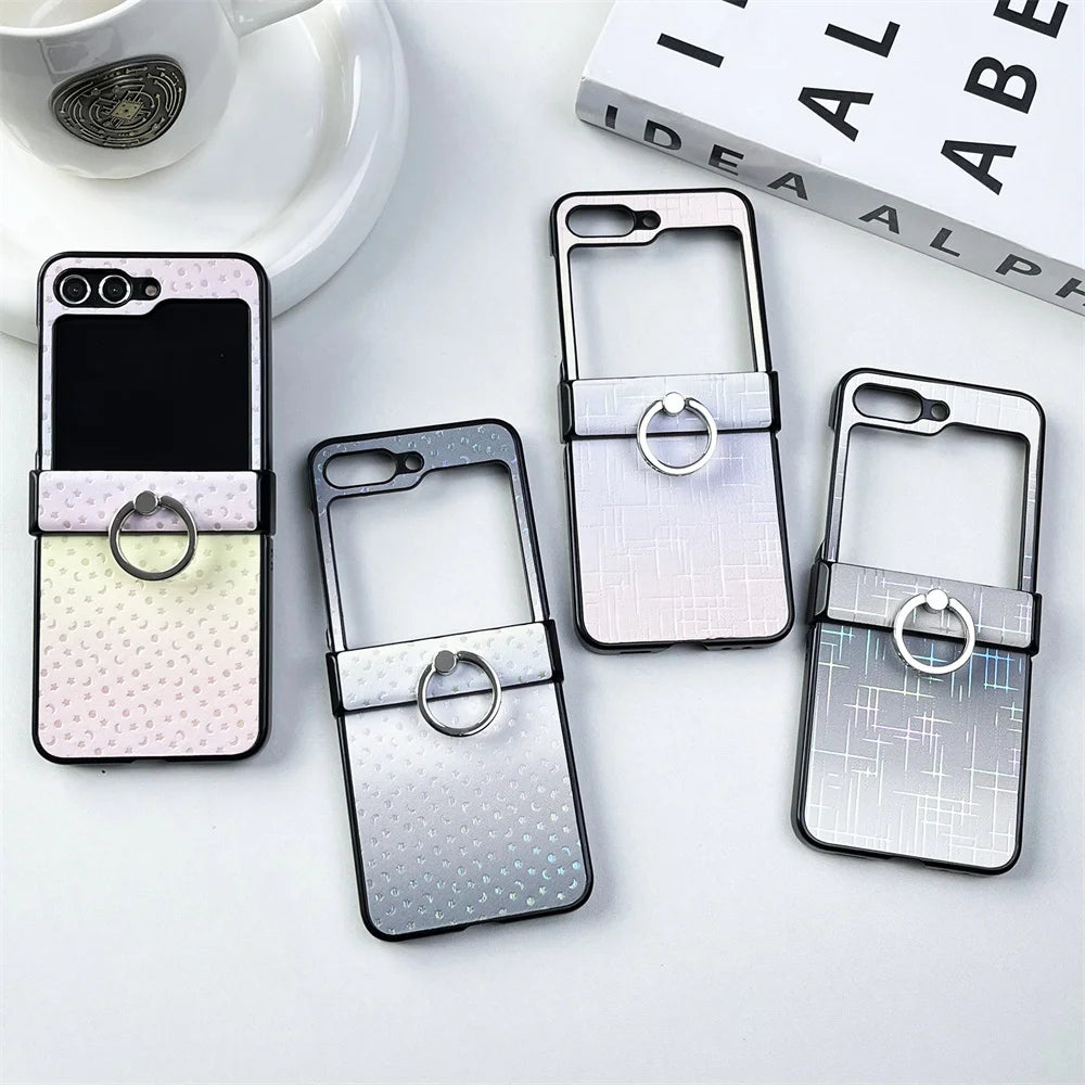 Leather Case Ring Holder Gradient Laser For Samsung Z Flip 5