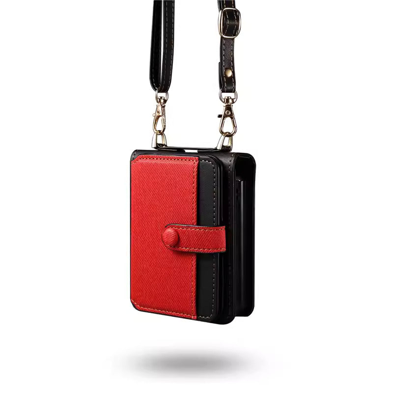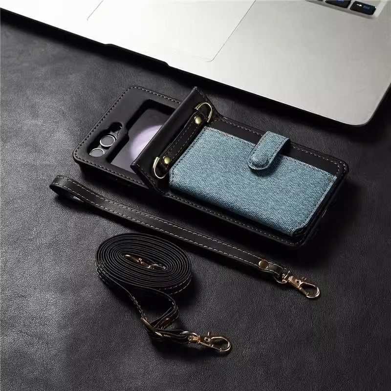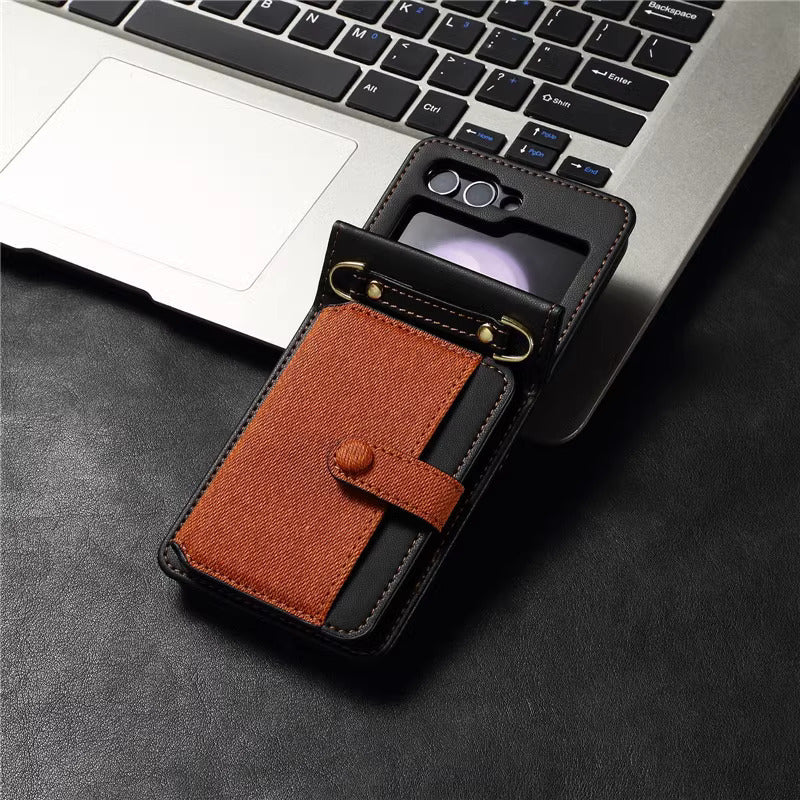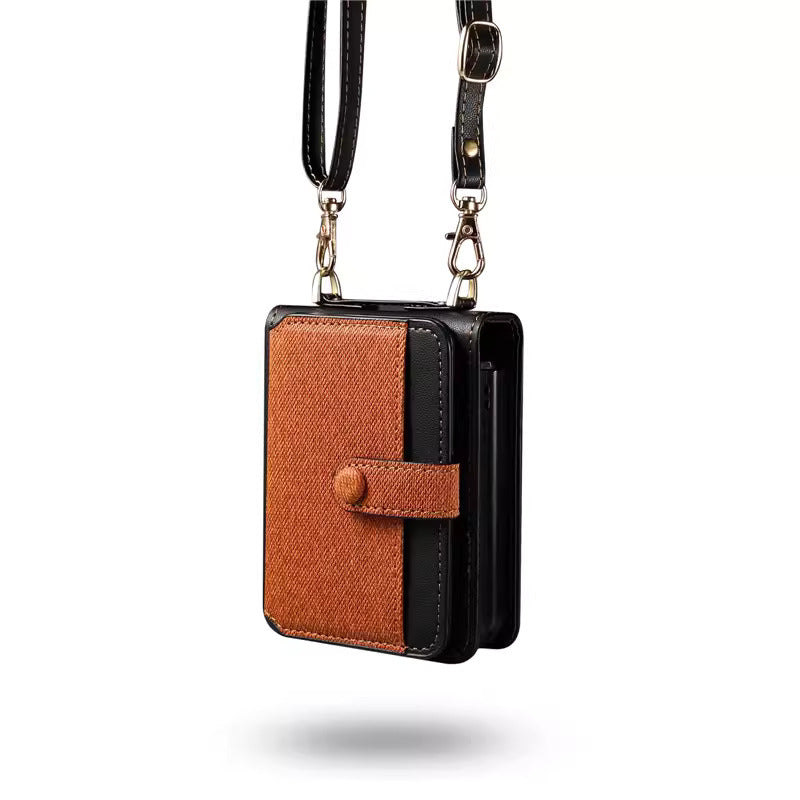 Samsung Z Flip Series: Chic Leather Wallet Case with Strap